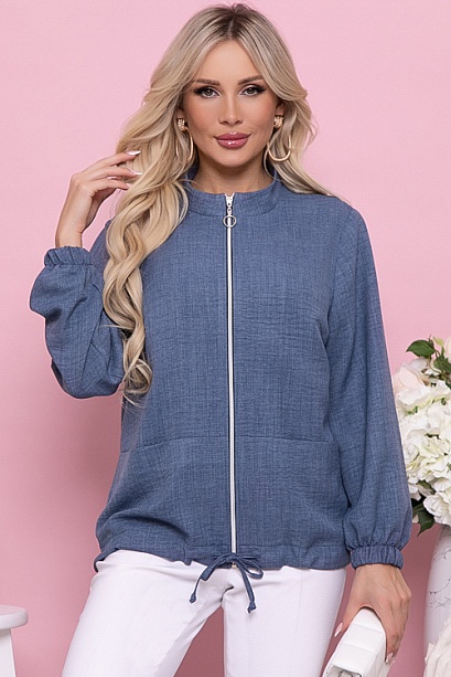 Жакет свободного силуэта из комфортного,легкого текстильного полотна,с центральной застежкой на молнию,с функциональными накладными карманами и кулиской по низу.