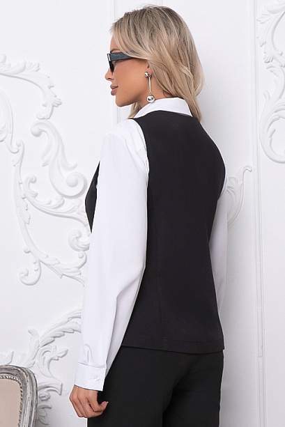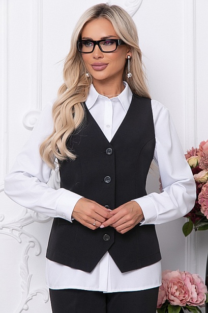 * Жилет из костюмной ткани полуприлегающего силуэта с центральной застежкой на пуговицы.