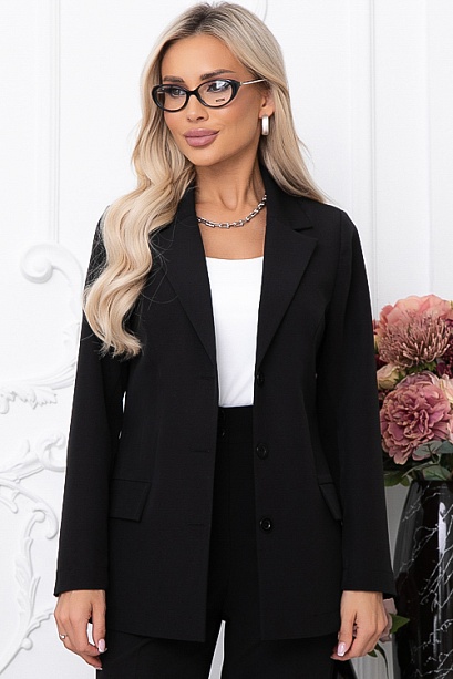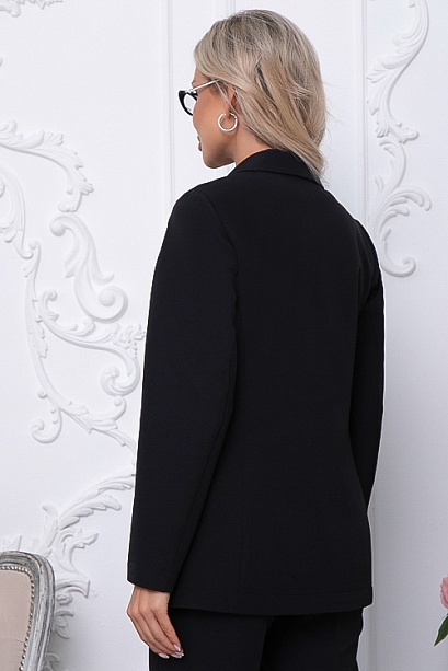 * Жакет из костюмной ткани, полуприлегающего силуэта, перед и спинка на подкладе. Воротник отложной с лацканами. Центральная застежка на три петли и пуговицы. По переду удобные прорезные карманы с клапанами.