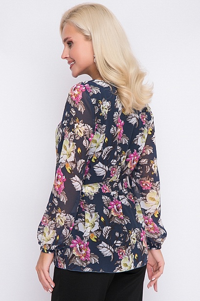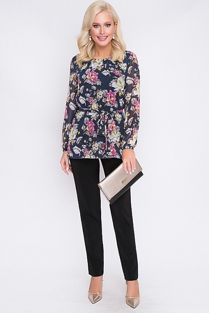 Блузка из шифона свободного силуэта на трикотажном подкладе.В комплекте пояс из основной ткани.