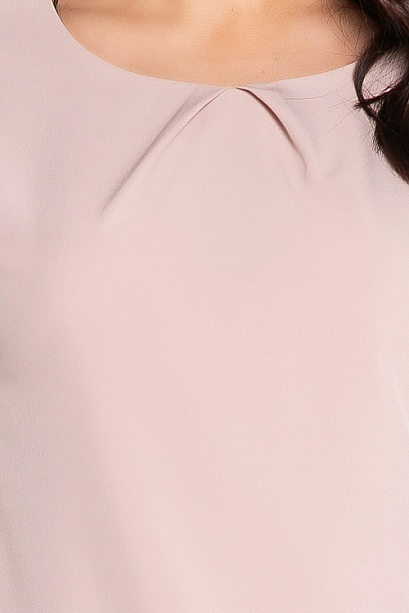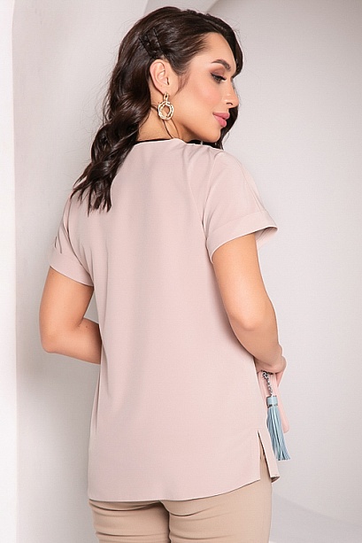 Блузка из текстильного полотна свободного силуэта с цельнокроеными рукавами.