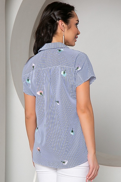 Рубашка из текстильного полотна в полоску с вышивкой.
