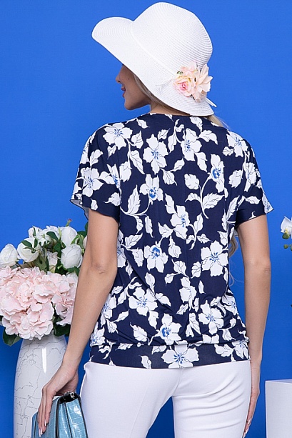 Блузка из трикотажного полотна с цельнокроеными рукавами и притачным поясом по низу.