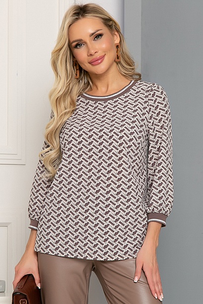 Блузка из текстильного полотна с подвязами по рукавам и горловине.