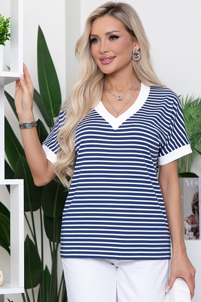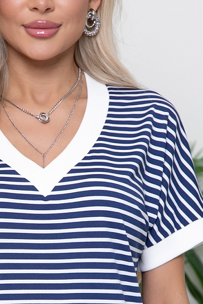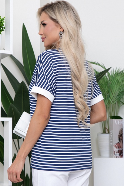 Блузка из трикотажного полотна в полоску с контрастной отделкой трикотажной рибаной по горловине и рукавам.