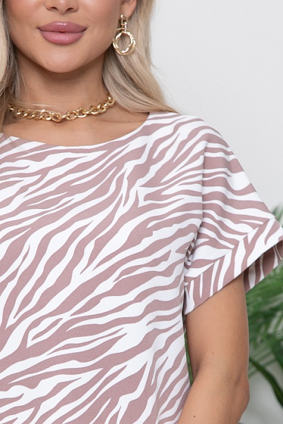Блузка из текстильного полотна с цельнокроеными рукавами и притачным поясом из трикотажной рибаны.