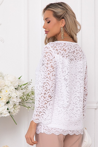 Блузка из кружевного полотна свободного силуэта на трикотажном подкладе.