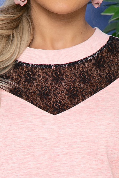 Свитшот свободного силуэта,полочка комбинирована кружевом,горловина отделана хлопковой рибаной компаньоном,по низу изделия кулиска.Изделие произведено из хлопкового трикотажа высокого качества производства Турция(футер двунитка-пенье ).
