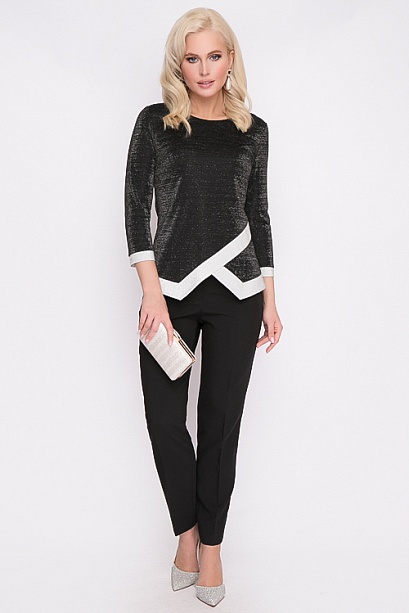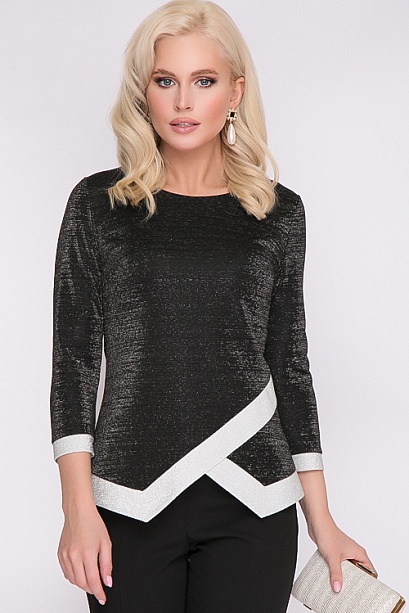 Блузка из трикотажа с блеском и контрастной отделкой из блестящего трикотажа.