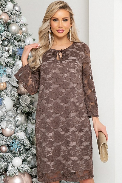 Платье из кружевного полотна прямого силуэта.
