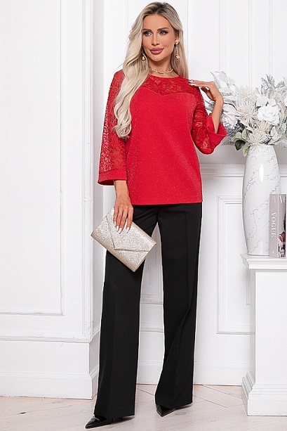 * Комбинированная блузка из трикотажного полотна с люрексом и кружева.