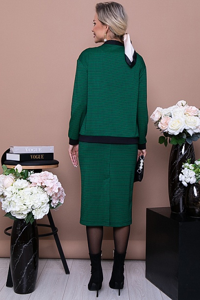 Комплект из кардигана и юбки,выполнен из жаккардового трикотажного полотна в гусиную лапку.