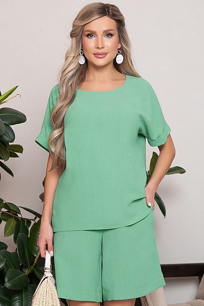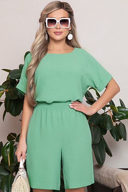 Комплект из текстильного полотна,состоит из блузки и шорт. 50% вискоза,45% п/э,5% лайкра