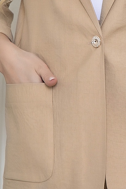Летний брючный комплект из легкой,комфортной костюмной ткани(ткань производство Турция).Жакет свободного силуэта с застежкой на одну пуговицу.Воротник отложной с лацканами.По переду жакета накладные удобные карманы.