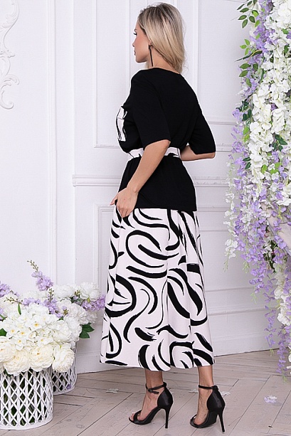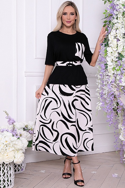 Комплект из блузки и юбки.Блузка-футболка из комфортного вискозного полотна свободного силуэта с разрезами в боковых швах.Карман и пояс из контрастной ткани.(ткань производство Турция)Юбка длиной миди из качественной текстильной вискозы с функциональными карманами в боковых швах, пояс на эластичной резине.(ткань производство Турция)
