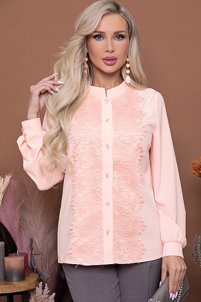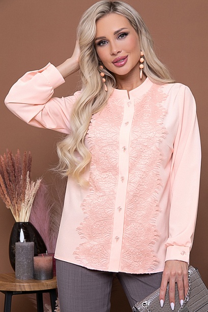 Рубашка из текстильного полотна свободного силуэта.Перед скомбинирован хлопковым кружевом.Воротник-стойка.Центральная застежка на петли и пуговицы.