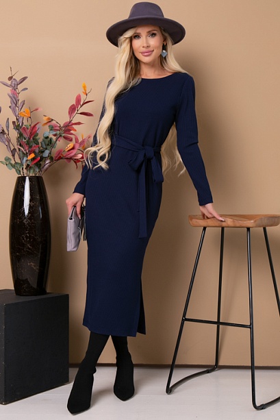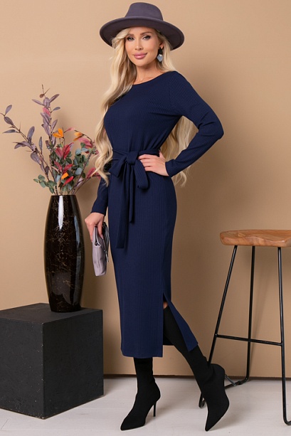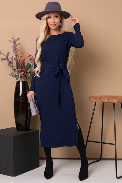Платье из трикотажа лапша длиной миди с разрезами в боковых швах,в комплекте пояс. 95% вискоза,5% лайкра