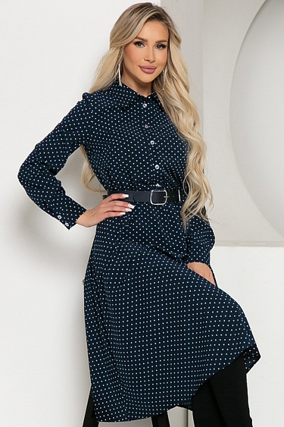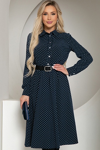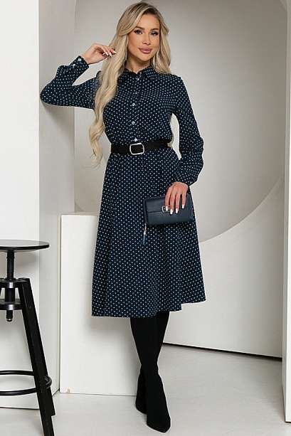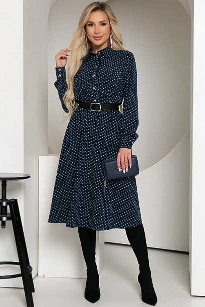 Платье из текстильного полотна отрезное по линии талии.Ремень в комплект не входит.