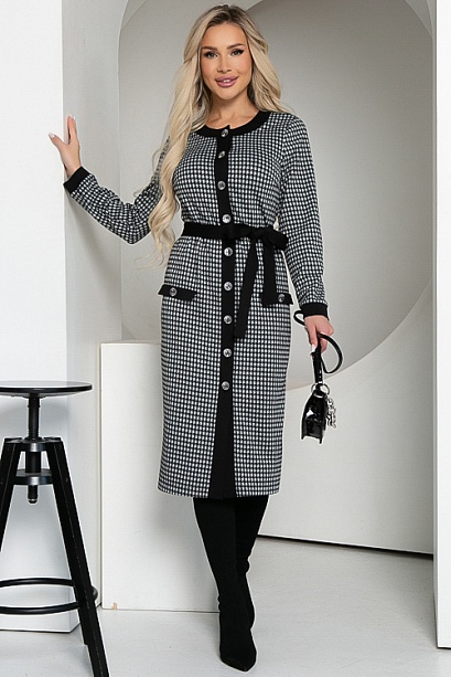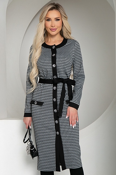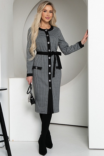 Платье из жаккардового трикотажного полотна с контрастной отделкой.Пояс в комплеке.