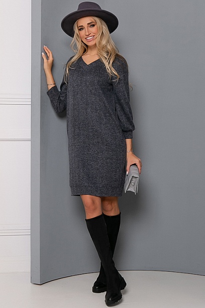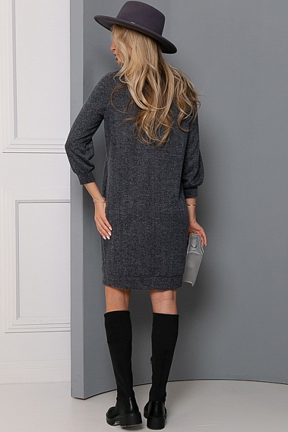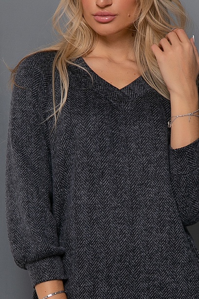 Платье из трикотажного полотна елочка свободного силуэта.