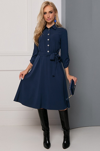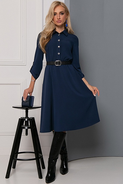 Платье из текстильного полотна, отрезное по линии талии с расклешенной юбкой,пояс из основной ткани в комплекте.Ремень в комплект не входит.