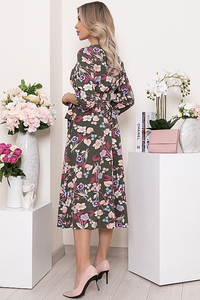 Платье из текстильного полотна,отрезное по линии талии,присобрано на эластичную резину, с летящей расклешенной юбкой и красивым поясом кушак в комплекте.
