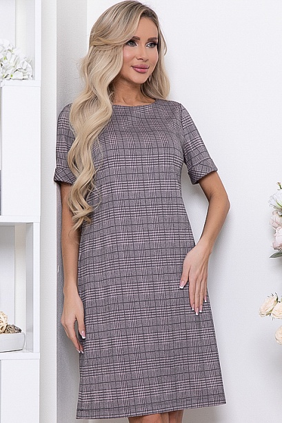 Платье А-образного силуэта из трикотажного полотна в клетку.