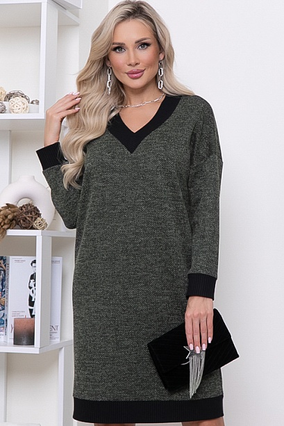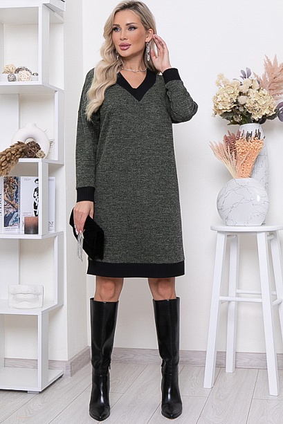 * Теплое, комфортное платье из трикотажного полотна в елочку с V-вырезом горловины и отделкой трикотажной рибаной. Ремень в комплект не входит.