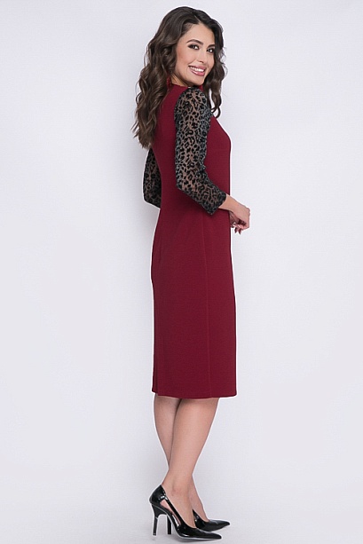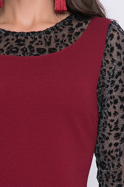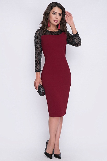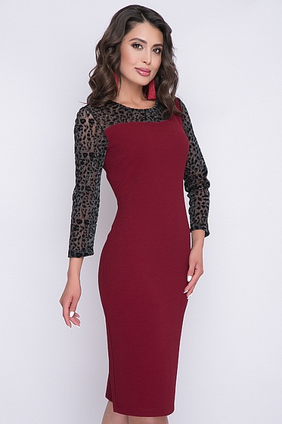Платье футляр из хорошо держащего форму трикотажного полотна.Кокетка и рукава из сетки с бархатным рисунком.