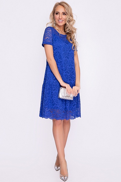 Платье из кружевного полотна А-силуэта с притачным воланом,на подкладе из креп шифона.