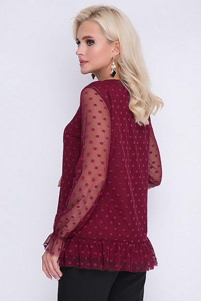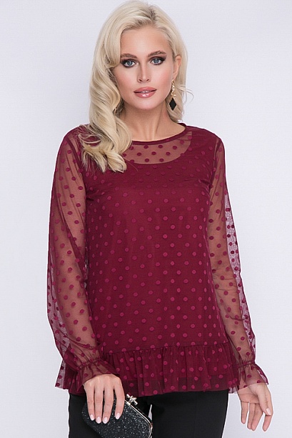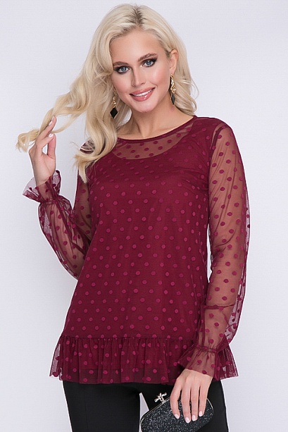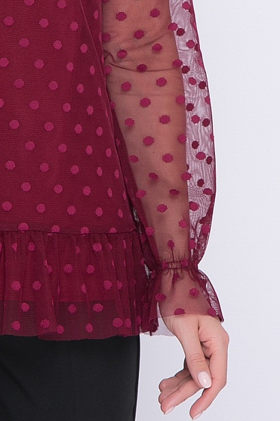 Блузка в комплекте с топом.Блуза из эластичной сетки в горох с притачным воланом по низу.Топ из креп шифона. 30% вискоза 65% п/э,5% эластан