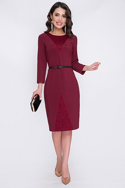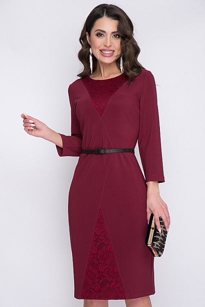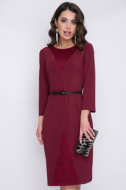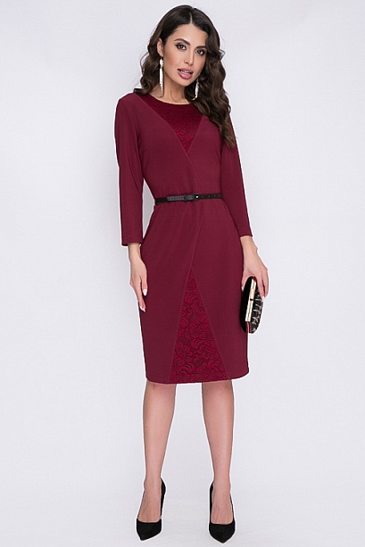 Платье из трикотажного полотна с кружевными вставками.Ремень в комплект не входит. 30% вискоза 65% п/э,5% эластан