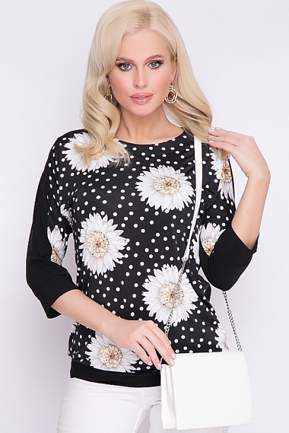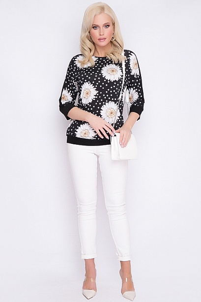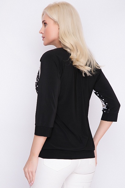 Блузка из трикотажного полотна с цельнокроеными рукавами свободного силуэта с притачным манжетом по низу. 30% вискоза 65% п/э,5% эластан