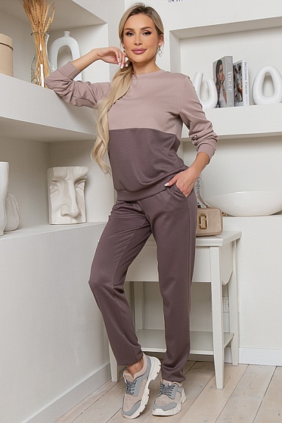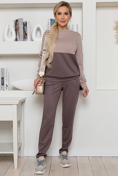 Комплект спортивный из комфортного трикотажного полотна.Комбинированный джемпер свободного силуэта.Брюки прямые с эластичной резиной по поясу и функциональными карманами.