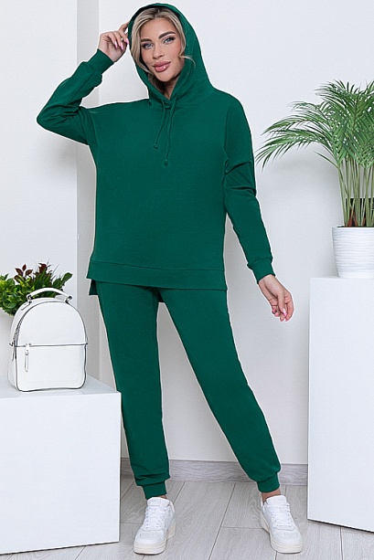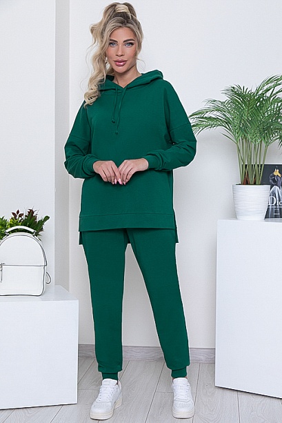 Брючный костюм из качественного трикотажного полотна футер(ткань производство Турция).Толстовка свободного силуэта со спущенным плечом и притачным длинным рукавомс капюшоном.Низ ассиметричный с манжетой по низу и разрезами по бокам.Брюки с посадкой по талии с функциональными карманами по бокам и эластичной резиной по поясу.По низу рукавов толстовки и брюк манжеты из трикотажной хлопковой рибаны.