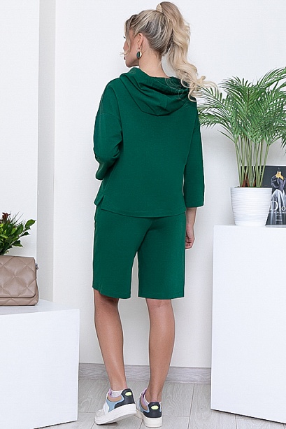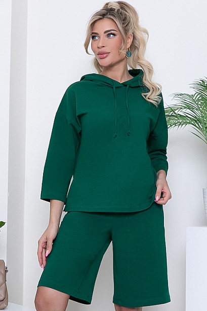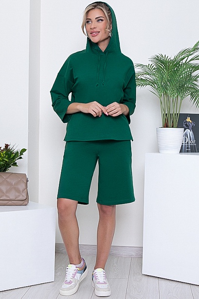 Брючный костюм из качественного трикотажного полотна футер(ткань производство Турция).Толстовка свободного силуэта со спущенным плечом и притачным рукавом с капюшоном и разрезами по бокам.Шорты прямого силуэта с посадкой по талии с функциональными карманами по бокам и эластичной резиной по поясу.