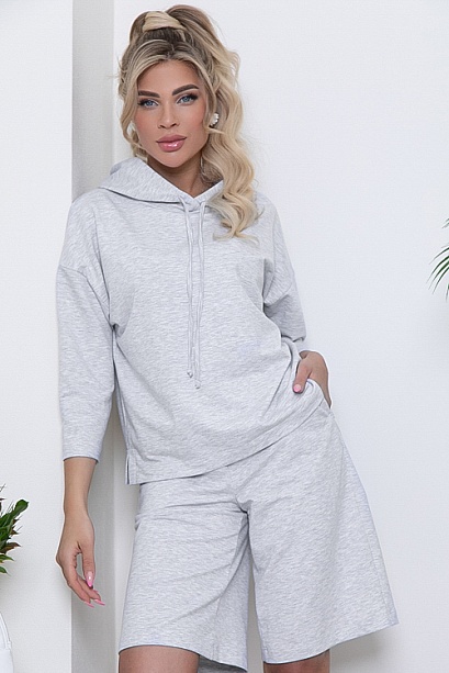 Брючный костюм из качественного трикотажного полотна футер(ткань производство Турция).Толстовка свободного силуэта со спущенным плечом и притачным рукавом с капюшоном и разрезами по бокам.Шорты прямого силуэта с посадкой по талии с функциональными карманами по бокам и эластичной резиной по поясу.