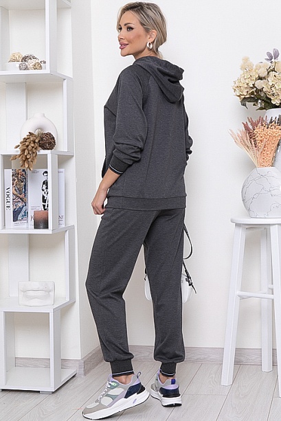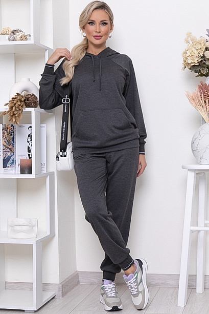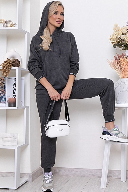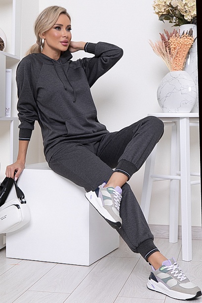 Брючный костюм из качественного трикотажного полотна.Толстовка свободного силуэта с капюшоном и удобным накладным карманам по центру.Брюки с посадкой по талии с функциональными карманами по бокам и эластичной резиной по поясу. Манжеты по низу рукавов толстовки и брюк-трикотажный,хлопковый подвяз(производство Турция).Костюм идеально подходит для спорта,отдыха и прогулок.