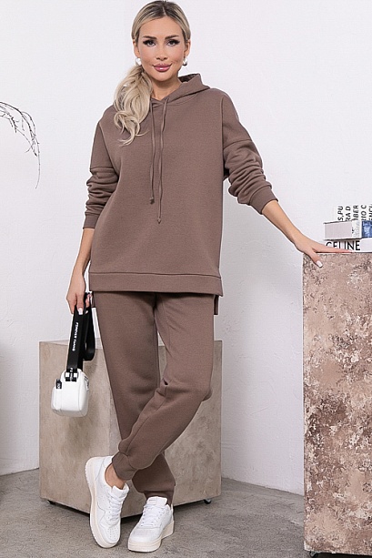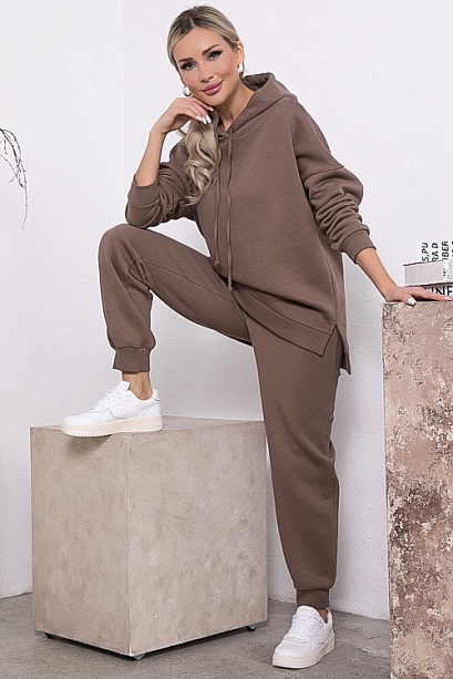 Брючный костюм из качественного трикотажного полотна футер с начесом (ткань производство Турция).Толстовка свободного силуэта со спущенным плечом и притачным длинным рукавом с капюшоном.Низ ассиметричный с манжетой по низу и разрезами по бокам.Брюки с посадкой по талии с функциональными карманами по бокам и эластичной резиной по поясу.По низу рукавов толстовки и брюк манжеты из трикотажной хлопковой рибаны.Костюм из футера это идеальный вариант для спорта,отдыха и прогулок.
