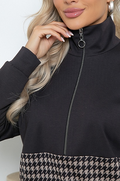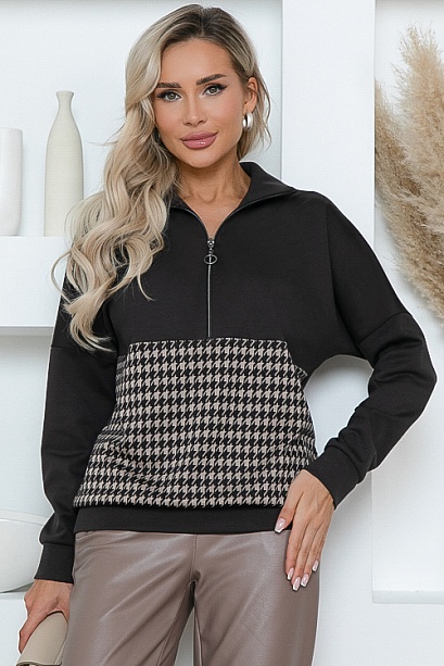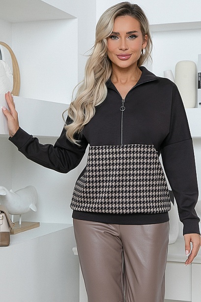 * Комбинированный джемпер свободного силуэта из трикотажного полотна джерси и жаккардового трикотажа гусиная лапка. * Длина спинки:  44-62   46-62,5   48-62,5   50-64   52-64,5   54-65 * Длина рукава от горловины:  44-71   46-71   48-71,5   50-72   52-73   54-73 * Рост модели  168 см * Размер модели  44 60% вискоза,35% п/э,5% лайкра