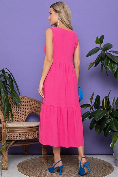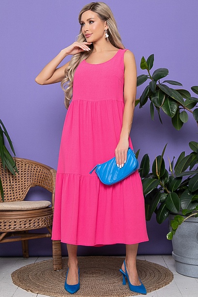 Платье из текстильного полотна свободного силуэта с двумя ярусами оборок.