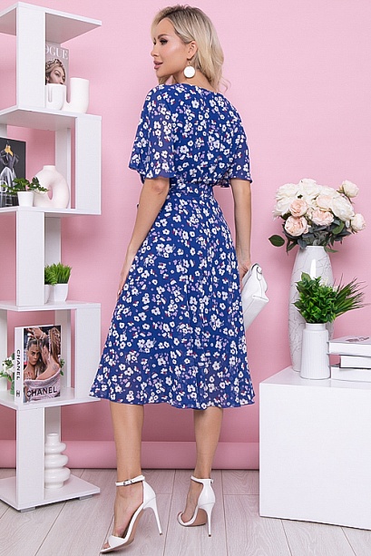 Платье из шифона на трикотажном подкладе,отрезное по линии талии с расклешенной юбкой. 30% вискоза,65% п/э,5% лайкра
