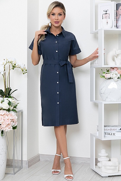 Платье-сафари из текстильного полотна с цельнокроеными рукавами и разрезами в боковых швах.Центральная застежка на пуговицы до низа.Воротник отложной на стойке.Пояс из основной ткани в комплекте. 70 % хлопок 30 % п/э