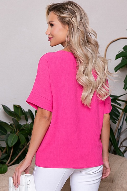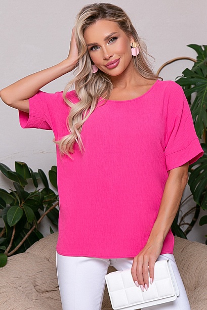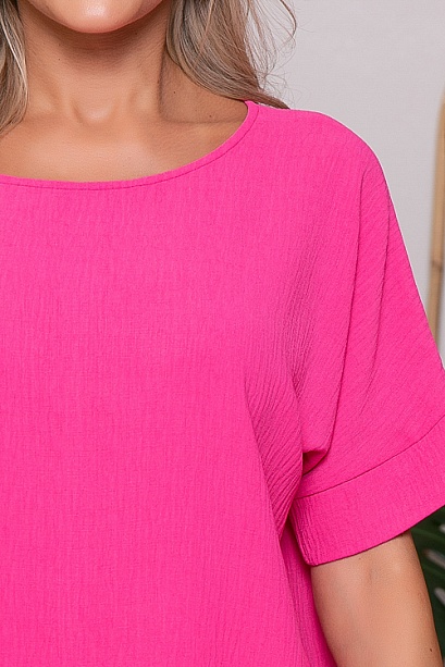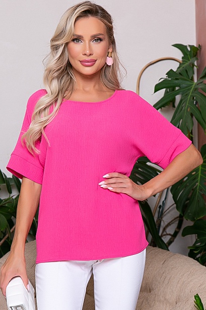 Блузка свободного силуэта из текстильного полотна с цельнокроеными рукавами.