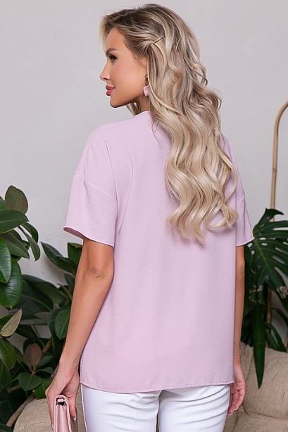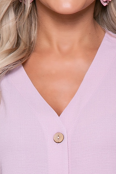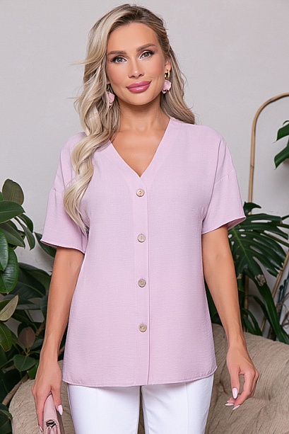 Блузка из текстильного полотна свободного силуэта с центральной застежкой на петли и пуговицы.