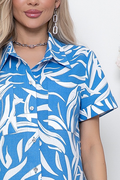 Летнее  платье  из комфортного льняного полотна свободного силуэта с центральной застежкой на пуговицы.Воротник отложной на стойке.По полочке накладные карманы.Пояс из основной ткани в комплекте. 100% лен
