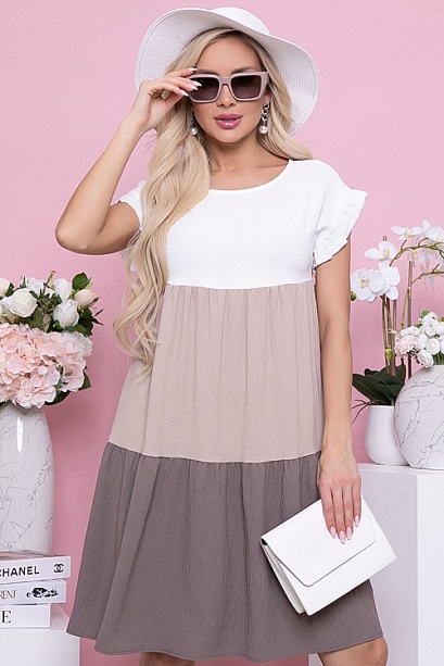 Платье из комфортного текстильного полотна трапецевидного силуэта с двумя ярусами.