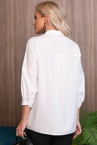 Рубашка из текстильного полотна свободного силуэта с центральной застежкой на пуговицы.Воротник отложной на стойке.