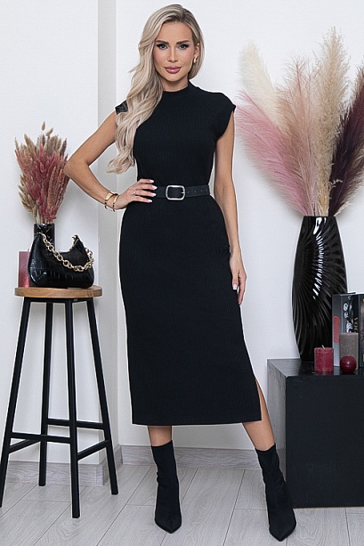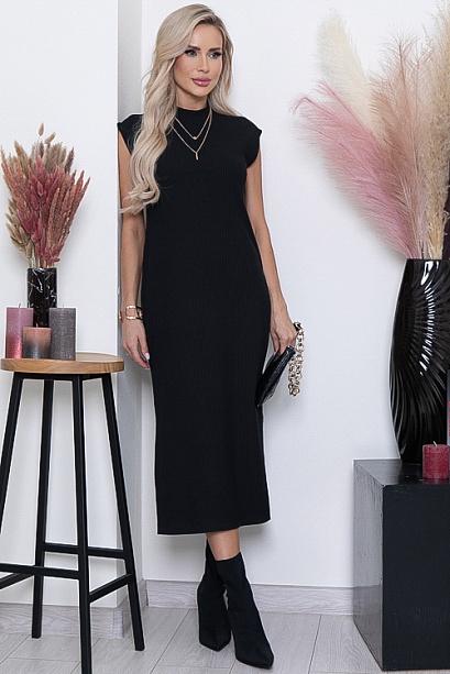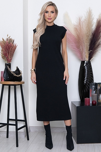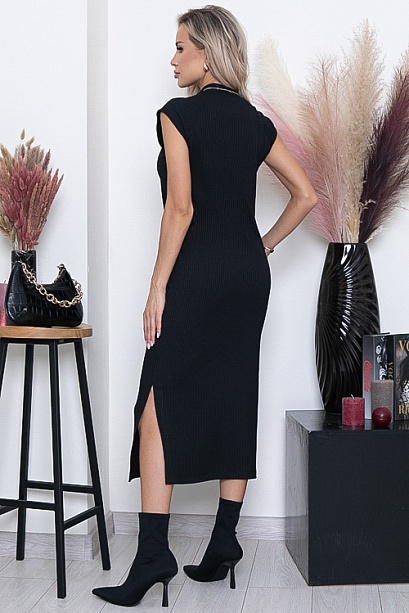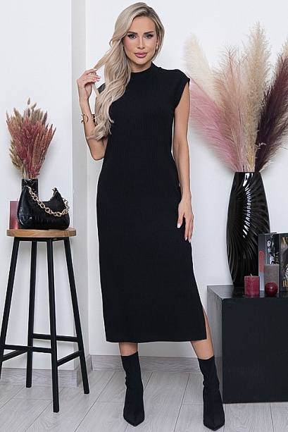 Платье из трикотажного полотна лапша,длиной миди с разрезами по бокам.