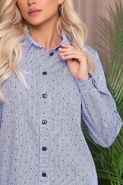 Рубашка свободного силуэта из комфортного хлопка тексель с центральной застежкой на пуговицы.Воротник отложной на стойке. 95% хлопок,5% лайкра